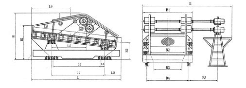 冷礦篩為坐式安裝,振動(dòng)電機(jī)不參振,由兩臺(tái)振動(dòng)電機(jī)做同步的反向運(yùn)轉(zhuǎn)帶動(dòng)篩箱運(yùn)動(dòng),物料在篩面上做直線的跳躍運(yùn)動(dòng)前行,周而復(fù)始。