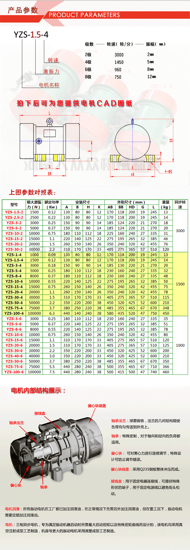 YZS振動電機的激振力利用率高、能耗小、噪音低、壽命長。振動電機的激振力可以無級調節,使用方便。YZS振動電機作為各類振動機械的激振源,可以應用于振動給料機、振動輸送機、振動放礦機、振動落砂機、振動篩分機等設備,YZS振動電機除了可以應用與一般振動機械外,還可以組合多種振動形式,所以被廣泛的應用在水電建設、火力發電、建筑、建材、化工、采礦、煤炭、冶金、輕工等領域。