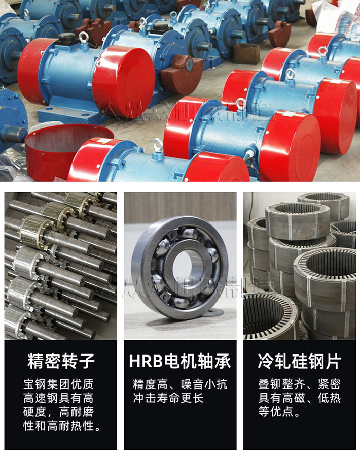 YZS振動電機是動力源與振動源結合為一體的激振源,振動電機是在轉子軸兩端各安裝一組可調偏心塊,利用軸及偏心塊高速旋轉產生的離心力得到激振力。它的激振力可以無級調節,使用方便。人從眾機械生產的YZS振動電機采用強阻型振動,可以穩定振幅,還具有機體重量輕,機械噪音低等特點,并且還可根據振動電機的安裝方式改變激振力的方向。