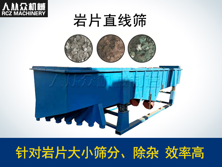 巖片是混雜巖的重要組成部分,它有很多的種類,是涂料生產(chǎn)廠家所必須的一種原料。根據(jù)不同的涂料,需要將巖片進(jìn)行等級的篩分,這時,巖片直線篩(直線振動篩)就是必不可少的。