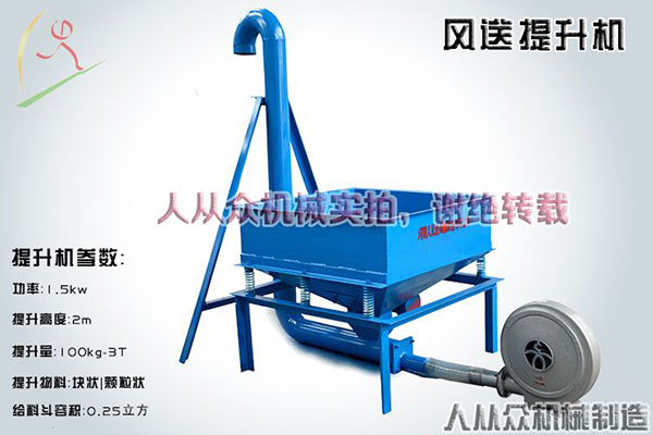 風(fēng)力提升機由鼓風(fēng)機、料斗、振動電機、輸送管道和其他裝置組成。電機作用于料斗,可以使物料勻速的下落,預(yù)防起拱和堵塞的現(xiàn)象。使用時先插電啟動振動電機和鼓風(fēng)機,運轉(zhuǎn)穩(wěn)定后向料斗內(nèi)倒入物料,經(jīng)過電機的振動,物料下落至運輸管道,遇到鼓風(fēng)機吹來的強風(fēng),被吹至管道頂部隨著出料口均勻的以螺旋形式輸出,一氣呵成。