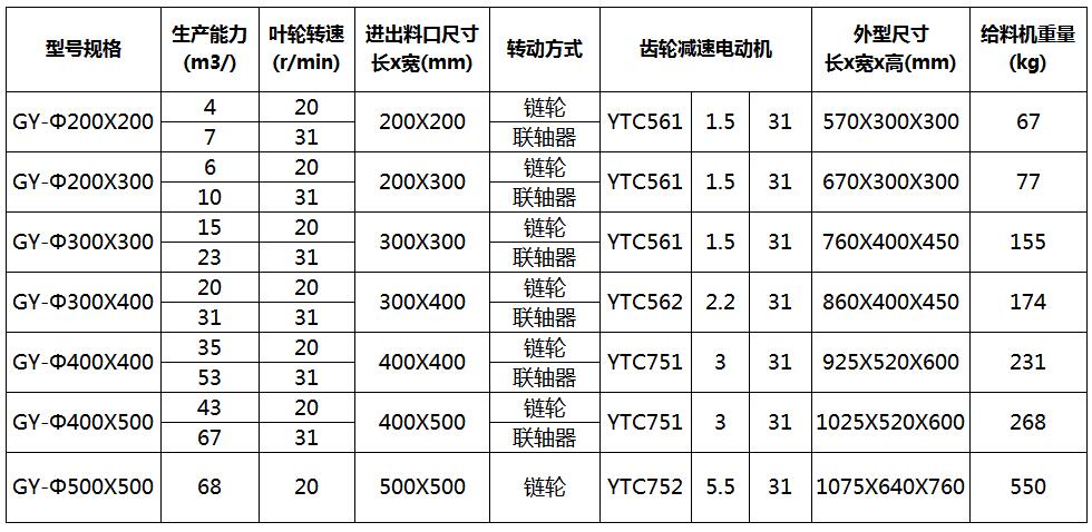 GY剛性葉輪給料機技術(shù)參數(shù):