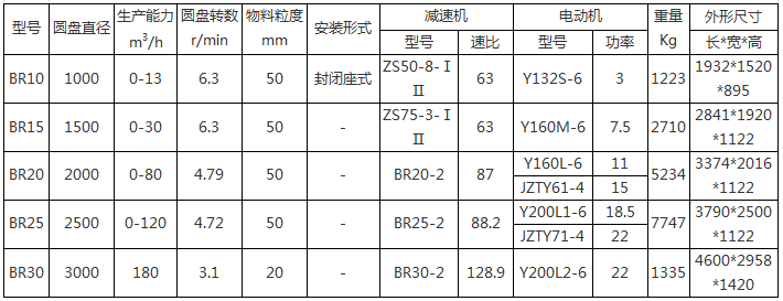 BR圓盤給料機(jī)型號技術(shù)參數(shù):